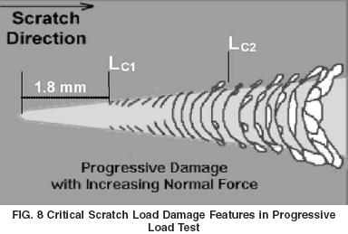 劃痕法是一種“定量”測量涂層膜基結合強度和失效形式的標準試驗方法,用一個加有金剛石圓球狀的針頭在涂層表面連續劃行,同時在針頭上逐漸增加載荷,當涂層被完全劃穿或者涂層出現明顯剝落那一刻所加載的載荷力就是涂層的結合力,用牛頓N表示。