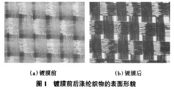 鍍膜前后滌綸織物的表面形貌如圖1所示。