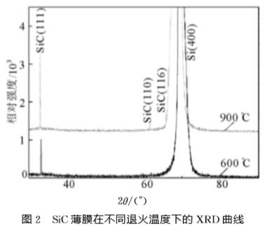 XRD結(jié)果表明隨著退火溫度的升高,SiC薄膜的結(jié)晶質(zhì)量變好。