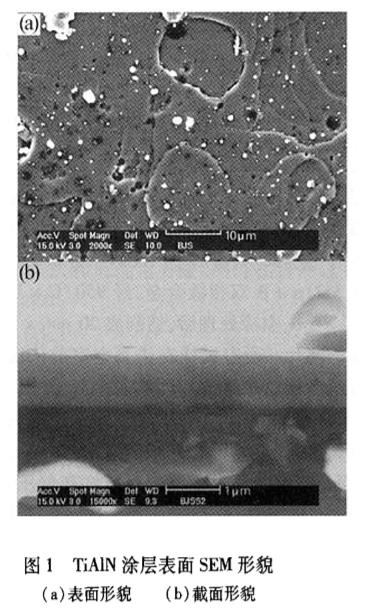鈦合金具有密度低、比強度高、耐腐蝕、可焊等優點,但由于鈦合金的耐磨性能差、摩擦系數大、易粘著、抗高溫氧化性能差等缺點限制了其應用。因此,有必要在鈦合金工件表面制備一層摩擦系數低、高溫抗氧化性能優異、與基體粘著性良好、且不會損傷鈦合金常規力學性能的表面改性層。目前鈦合金防護涂層多采用電化學鍍、陽極氧化、等離子噴涂、激光熔覆等工藝來改善其抗高溫氧化性及耐磨性。但上述工藝都存在一些不足之處,如電化學鍍有氫脆隱患、熱噴涂導致表面過熱、陽極氧化降低表層韌性、激光工藝造成合金表面微裂紋等。TiAIN涂層是在TiN基礎上發展起來的一種性能優良的氮化物涂層,具有高的硬度、良好的耐磨性和抗高溫氧化性能,近些年廣泛應用于機械加工的工模具上,特別是高速切削工具的應用,而在鈦合金防護涂層方面鮮見報道。本試驗采用多弧離子鍍技術在TC11鈦合金基片上制備了TiAIN涂層,初步探索了電弧離子鍍技術對鈦合金表面改性的效果。