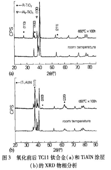 (2)用電弧離子鍍技術制備TiAIN涂層可以明顯提高缽合金的表面硬度,改善常溫下合金的耐磨性和抗氧化性能,TiAIN涂層650℃氧化后,膜層保持光亮狀態,對欽合金仍具有較好的耐磨性防護效果。