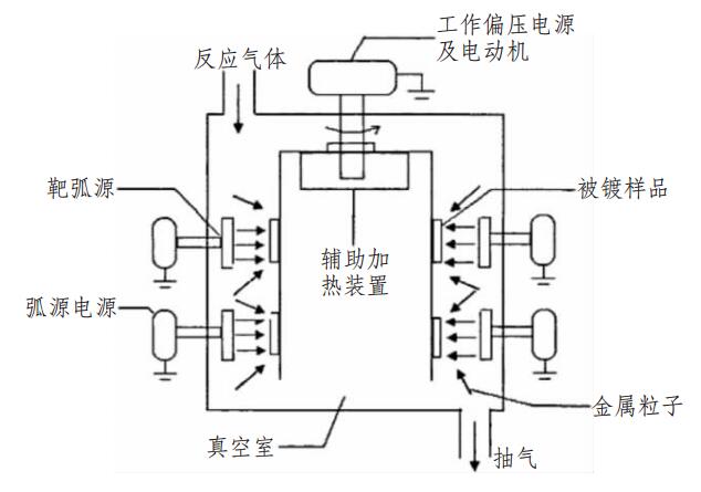 圖1 多弧離子鍍工作原理示意圖
