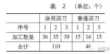 使用涂層滾刀與普通滾刀相比,壽命提高為原來的2.39倍,成本提升至原來的1.99倍。